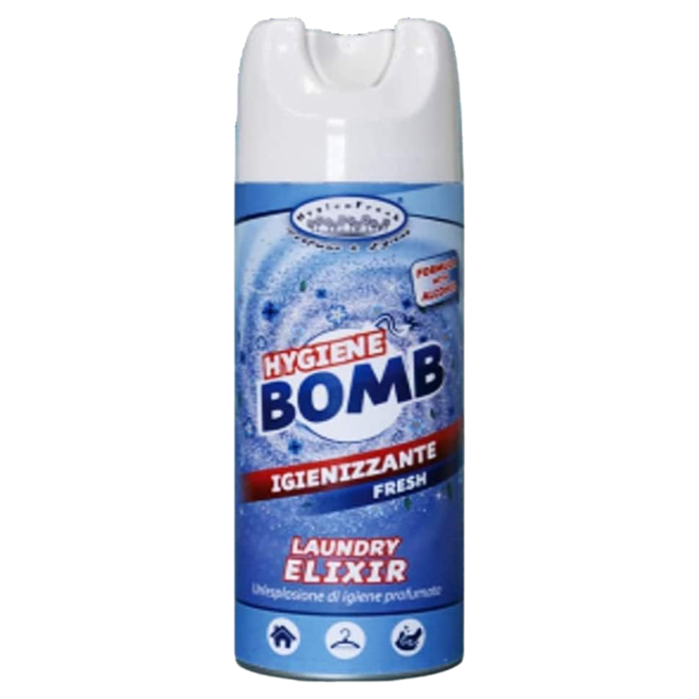 HygienFresh HYGIENE BOMB, Alcool 80%, Spray Igienizzante Per Tessuti e Superfici 400ml