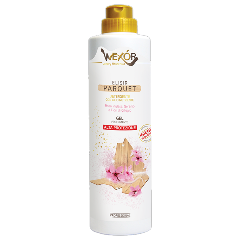 Wexór Elisir PARQUET Detergente Con Olio Nutriente. GEL PROFUMANTE – Alta Protezione, ROSA INGLESE, GERANIO e FIORI DI CILIEGIO 750ml